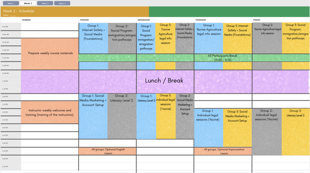 Social Program led by Social Worker + Researcher Diane Caba and Educator Marion Standefer, Legal and Illegal Immigration Seminars by OFII, Digital Literacy, Marketing, Financial Literacy, Literacy, business seminars by local and international entrepreneurs